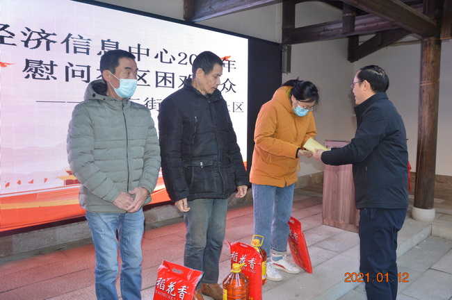 1月12日上午,省经济信息中心副主任杨东同志带领中心党员干部一行前往中山社区开展党员进社区春节慰问困难群众活动。杨东副主任首先向社区工作人员详细了解了困难群众的身体状况、家庭收入、目前存在的困难等情况,接着为10户困难群众送上大米、食用油等慰问品,同时对中心三户结对帮扶对象送上慰问金,使他们真切地感受到中心的爱心和温暖,确保让他们过一个祥和、温暖的春节。