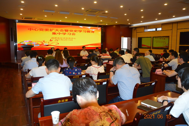 6月15日上午,省经济信息中心党委书记、主任蔡荣富主持召开党委(扩大)会暨党史学习教育集中学习会,深入学习习近平总书记来闽考察重要讲话精神、《习近平新时代中国特色社会主义思想学习问答》等,中心党委副书记杨东围绕加强党史学习教育践行初心使命作了重点发言。中心领导及全体党员、干部参加了会议。