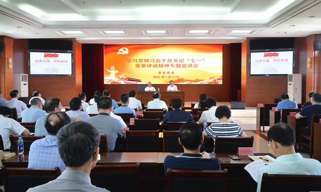 7月23日上午,省发改委举办学习贯彻“七一”重要讲话精神专题宣讲会,邀请省委党校省行政学院原党建教研部主任、二级教授李新生作题为“以史为鉴开创未来”的主题宣讲。中心党委班子成员和各支部书记参加会议。