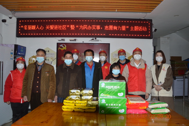 活动现场,大家欢聚一堂,中心志愿者与社区群众一起交流冬至节的风俗,探讨如何做好疫情防控,确保身体健康,并为社区困难群众送上汤圆、大米、牛奶等慰问品,使社区群众真正感受到组织的关心和温暖。随后,中心志愿者与社区工作人员围绕党的二十大报告中一系列新思想、新论断、新举措,共同学习宣传党的二十大精神,谈自己的所感所想,结合自身工作分享心得体会,将理论学习成果转化为促进工作事业发展的强大动力。