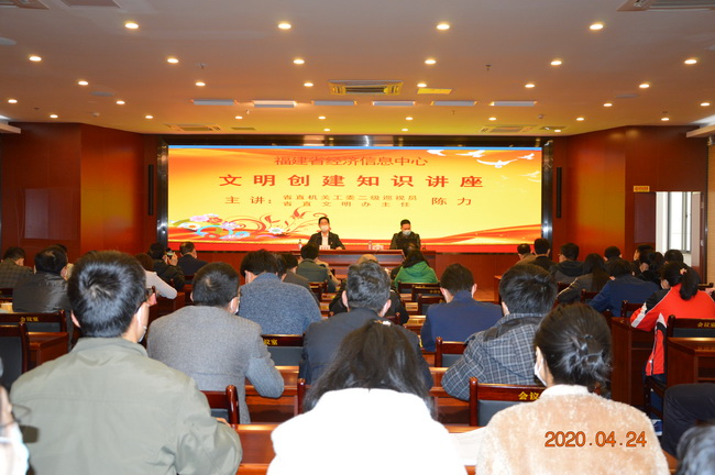 4月24日下午,福建省经济信息中心举办精神文明创建知识专题讲座,邀请省直机关工委二级巡视员、省直文明办主任陈力同志以《真抓实干、迎头赶上》为题为中心全体干部职工作辅导报告。