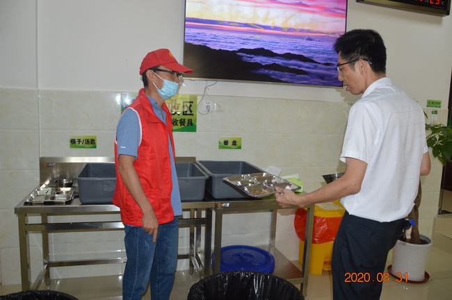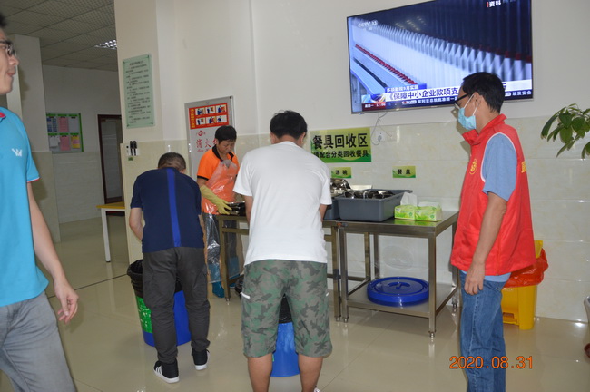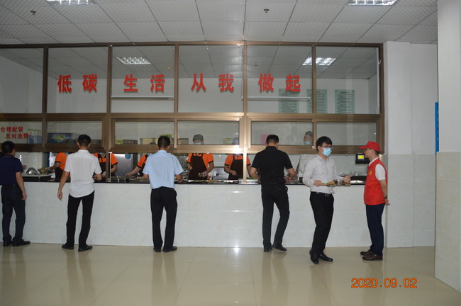 活动中志愿者进行了分工,一名志愿者负责提醒就餐干部职工践行“光盘行动”,吃多少打多少,避免餐饮浪费;一名志愿者负责监督剩饭剩菜处理情况,对剩饭剩菜较多的干部职工,建议其打包带走,禁止倒进餐余垃圾回收处。