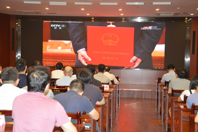 9月14日下午,省经济信息中心组织全体干部职工集中收看了“全国抗击新冠肺炎疫情表彰大会”实况录像,大家深入学习了习近平总书记重要讲话和抗疫英雄事迹,全体干部职工接受了一次深刻的爱国主义教育。