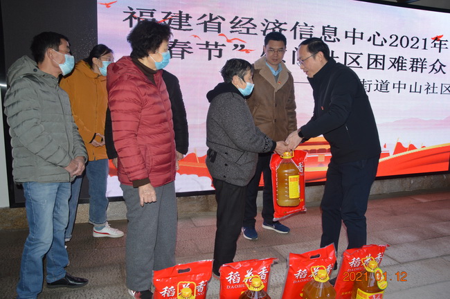 1月12日上午,省经济信息中心副主任杨东同志带领中心党员干部一行前往中山社区开展党员进社区春节慰问困难群众活动。杨东副主任首先向社区工作人员详细了解了困难群众的身体状况、家庭收入、目前存在的困难等情况,接着为10户困难群众送上大米、食用油等慰问品,同时对中心三户结对帮扶对象送上慰问金,使他们真切地感受到中心的爱心和温暖,确保让他们过一个祥和、温暖的春节。