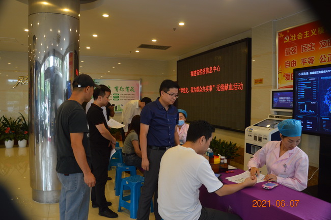 为切实推进“我为群众办实事”实践活动深入开展,大力弘扬“捐一份热血,献一片爱心”的无私奉献精神,以实际行动助推党史学习教育走深走实,6月7日上午,福建省经济信息中心组织干部职工开展2021年“学党史 我为群众办实事”无偿献血活动。