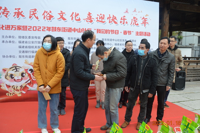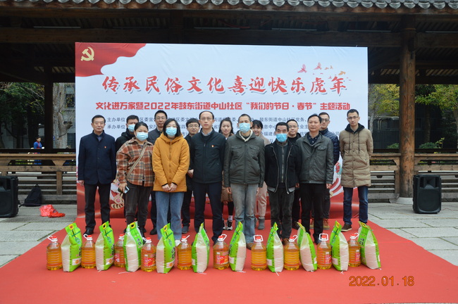 活动现场,中心党员干部与中山社区群众一起观看了“传承民俗文化、喜迎快乐虎年”——文化进万家暨2022年“我们的节日春节”主题活动节目,结合省直机关“佳节尚文明、志愿关爱行”活动,慰问团队与社区群众亲切交谈,详细询问他们的生活条件、健康状况及收入情况,并为3户结对帮扶对象送上慰问金,为10户脱贫群众送上大米、食用油等春节慰问品和新年的祝福。