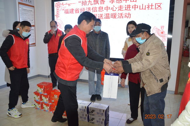 2023年是福州拗九节入选省非遗的第二年,为传承福州特有的民间传统节日“拗九节”,弘扬中华民族尊老敬老、崇尚孝道的传统美德,2月17日,省经济信息中心组织志愿者赴中山社区开展“我们的节日·拗九节——拗九飘香 孝感中山”社区慰问志愿活动。