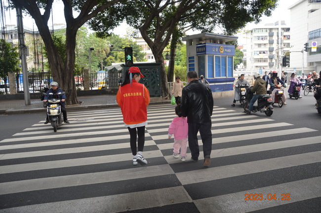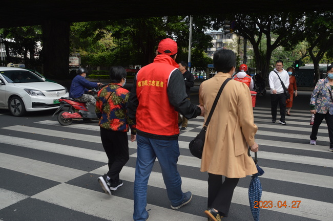 志愿者们对机动车不礼让斑马线、电动车闯红灯、行人乱穿马路等不文明交通行为进行劝导,协助交警宣传文明交通、维护道路交通秩序,引导市民共同营造文明、有序的交通环境。