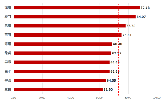 莆田市围绕特色产业打造平台经济集聚示范区,指数达75.01。
