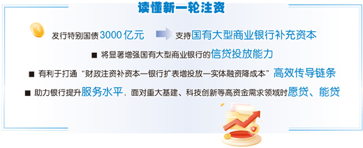 银行服务实体经济的能力,与自身资本金实力密切相关。在多位业内人士看来,今年发行特别国债3000亿元,支持国有大型商业银行补充资本,有利于更好发挥资金的“撬动”作用,为实体经济增添源头活水。
