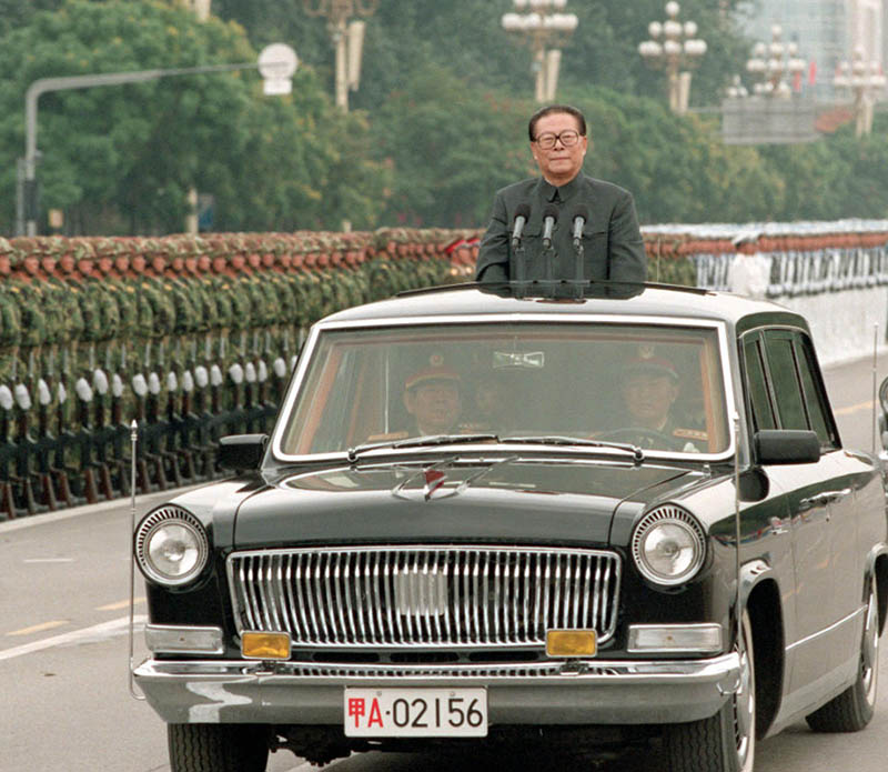 1999年10月1日,中华人民共和国成立50周年盛大庆典在北京天安门广场举行。江泽民同志检阅由人民解放军陆海空三军和人民武装警察部队、民兵预备役部队组成的地面方队。